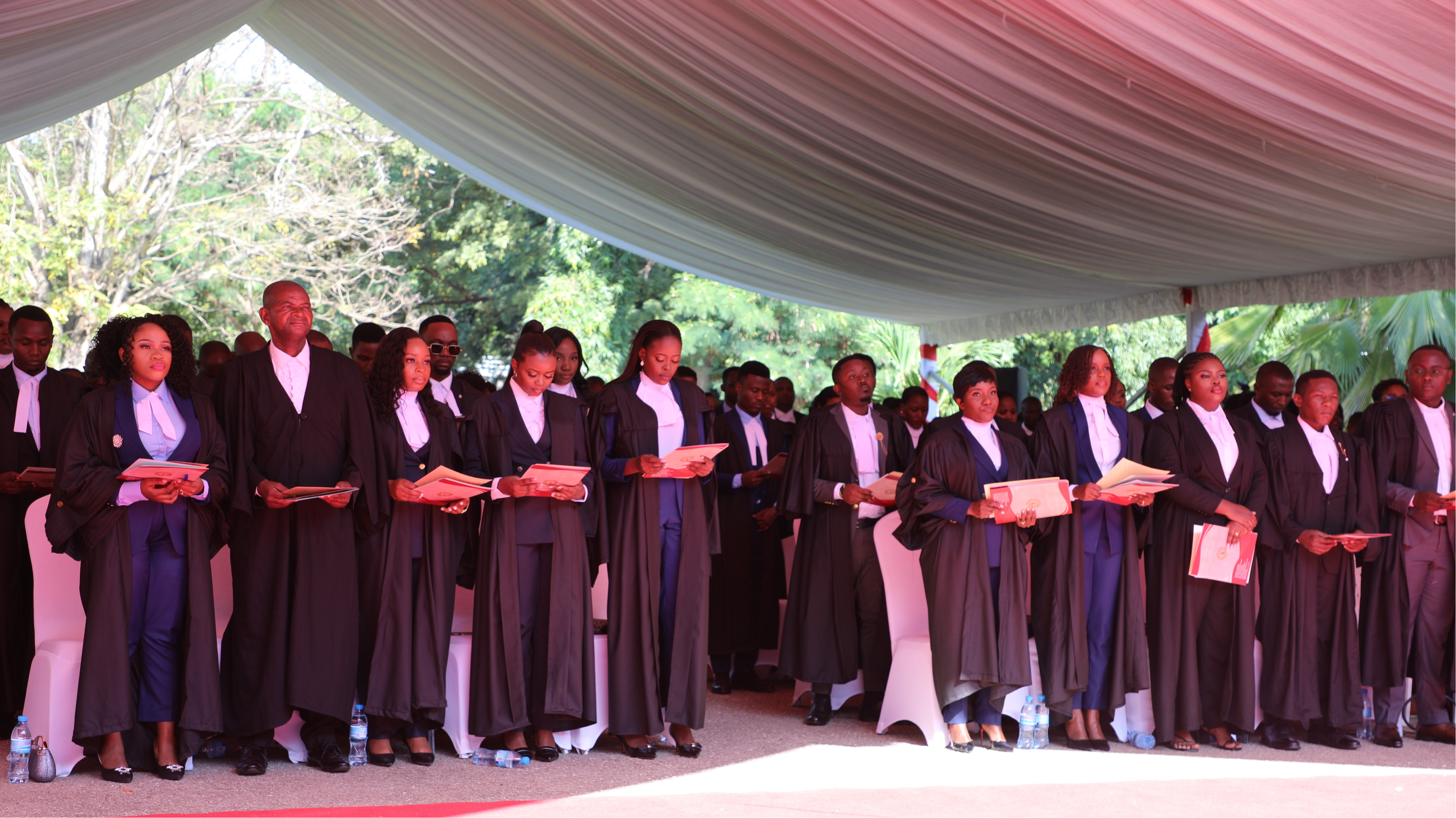 Baadhi ya wahitimu wa Taasisi ya Mafunzo ya Uanasheria kwa Vitendo Tanzania (LST) wakila kiapo cha Uwakili mbele ya Jaji Mkuu wa Tanzania.